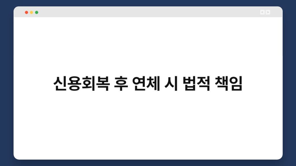 신용회복은 많은 이들에게 새로운 시작을 의미합니다. 그러나 회복 이후에도 연체가 발생할 경우, 법적 책임이 따른다는 점은 간과하기 쉽습니다. 이번 글에서는 ...